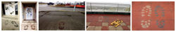 En cada una de sus ediciones se realizaron huellas con forma de pisadas variando el material que determinaba la forma de las mismas.